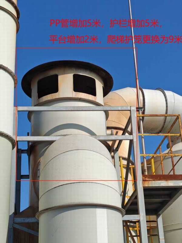 2.PPA管煙囪加裝爬(pá)梯(tī)、鋼平台、護(hù)欄(lán)、圍欄。